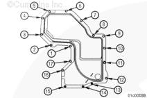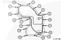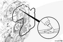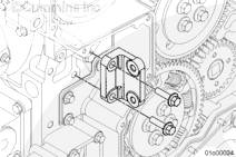 使用康明斯ISX15 CM2250發(fā)動機(jī)提升設(shè)備將齒輪室蓋安裝到下部三個(gè)雙頭螺柱上。
