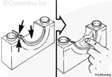 確??得魉笲3.9、B4.5、B4.5 RGT 和 B5.9 發(fā)動(dòng)機(jī)軸承定位舌對(duì)準(zhǔn)主軸承缸體鞍座上的定位舌。