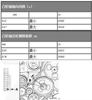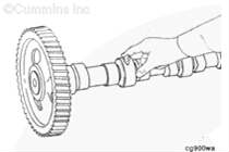在康明斯B3.9、B4.5、B4.5 RGT 和 B5.9 發(fā)動機凸輪軸齒輪與曲軸齒輪嚙合之前,檢查凸輪軸是否容易旋轉。安裝正確時,凸輪軸必須旋轉自如。