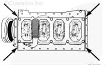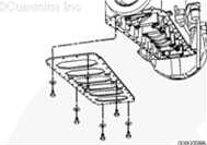 注: 安裝三個(gè)導(dǎo)向銷(xiāo)(零件號(hào) 3164977)以改進(jìn)油底殼密封部件與缸體之間的對(duì)準(zhǔn)情況。
