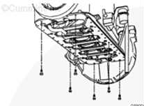 將底板安裝到缸體上。使用六個(gè)油底殼螺栓將底板臨時(shí)固定到位。
