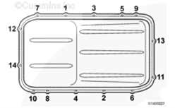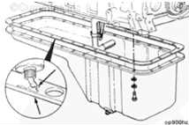 在新油底殼密封墊的兩側(cè)涂上一圈 2-mm [0.063-in] 的 RTV,零件號(hào) 3164067。