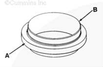 新的康明斯B3.9、B4.5、B4.5 RGT 和 B5.9 發(fā)動(dòng)機(jī)曲軸后油封 (A) 將安裝在油封導(dǎo)向工具 (B) 上。在將油封安裝在曲軸前端上時(shí),此油封必須留在油封導(dǎo)向工具上。這可確保在安裝期間不會(huì)損壞油封唇部。