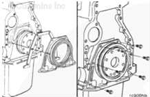 對(duì)于前齒輪系康明斯發(fā)動(dòng)機(jī),曲軸后油封托架安裝在缸體后部,以蓋住曲軸后油封。對(duì)于后齒輪系發(fā)動(dòng)機(jī),曲軸后油封安裝在飛輪殼中