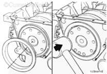 注: 用來(lái)安裝曲軸后油封/耐磨襯套總成的維修工具(零件號(hào) 3824078)也可用于安裝曲軸后油封。