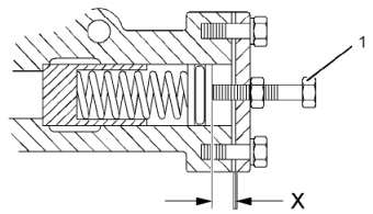4調(diào)整螺釘(1)i設匿為17 mm(0 67In) (A)。擰緊螺釘。有關正確的步驟請參閱《折解和蛆裝》 “發(fā)動機機油安全閥拆卸和安裝“。