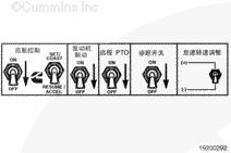 除康明斯巡航控制功能外,巡航控制選擇開關(guān)還具有增大/降低怠速轉(zhuǎn)速、PTO 轉(zhuǎn)速、故障代碼閃爍、道路車速調(diào)速器極限等功能。