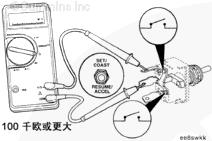 當(dāng)開關(guān)釋放時(shí),萬用表必須顯示開路特征(100 千歐或更大)。如果在任何一項(xiàng)測試中萬用表不能顯示正確值,說明開關(guān)已經(jīng)故障。