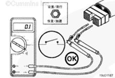 將測試導(dǎo)線插入原始設(shè)備制造商 (OEM) 線束接頭的巡航控制 ON/OFF 開關(guān)信號觸針,并且將其與萬用表表筆相連。將另一根表筆接觸康明斯ISF3.8 CM2220發(fā)動(dòng)機(jī)缸體接地。