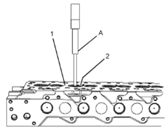 2用清潔的發(fā)動(dòng)機(jī)機(jī)油潤滑新氣門導(dǎo)管(2)。將氣門導(dǎo)管(2)置于Perkins1106A/C發(fā)動(dòng)機(jī)缸蓋(1)上的位置中。小心輕敲氣門導(dǎo)管以開始安裝。