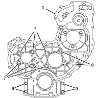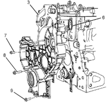 2.將螺栓(7)、(8)和(9)從前Perkins1106A/C發(fā)動(dòng)機(jī)機(jī)殼體(3)上拆下。
