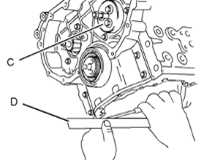7將前Perkins1106A/C發(fā)動(dòng)機(jī)機(jī)殼體從工具(B)和工具(C)的上方安裝到Perkins1106A/C發(fā)動(dòng)機(jī)缸體上。