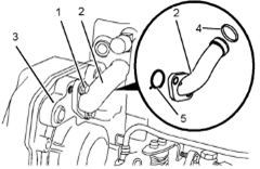 1拆下將旁通管(2)固定在前Perkins1106A/C發(fā)動(dòng)機(jī)機(jī)殼體(3)上的螺栓(1)。將旁通管(2)從Perkins1106A/C發(fā)動(dòng)機(jī)缸蓋上拆下。從旁通管(2)上卸下O形密封圈(4)和(5)。