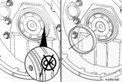 交替擰緊螺母并轉(zhuǎn)動(dòng)半圈,直到安裝工具接觸到曲軸端。