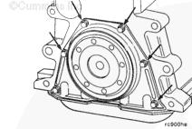 曲軸后油封安裝在殼體上,該殼體通過(guò)螺栓安裝在缸體后部。使用雙層 Teflon™ 密封件。曲軸密封面必須清潔并且在安裝油封時(shí)沒(méi)有機(jī)油。