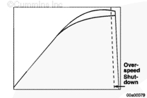 超速停機閾值是 ECM 切斷發(fā)動機供油時的發(fā)動機轉(zhuǎn)速值。該閾值可從工廠默認值向下調(diào)整??梢允褂?INSITE™(零件號 3825145)進行此調(diào)整。