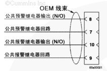 故障情況會引起公共預(yù)警或公共報警繼電器輸出(2A @ 30 VDC),由 ECM 接通。GOEM 選擇的設(shè)備如果使用這些電路,會使操作者意識到存在故障狀況。