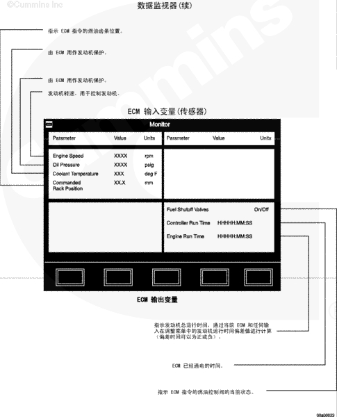 本節(jié)示意圖顯示您可以使用 INSITE™ 在監(jiān)測模式中顯示的所有可能的參數(shù)。